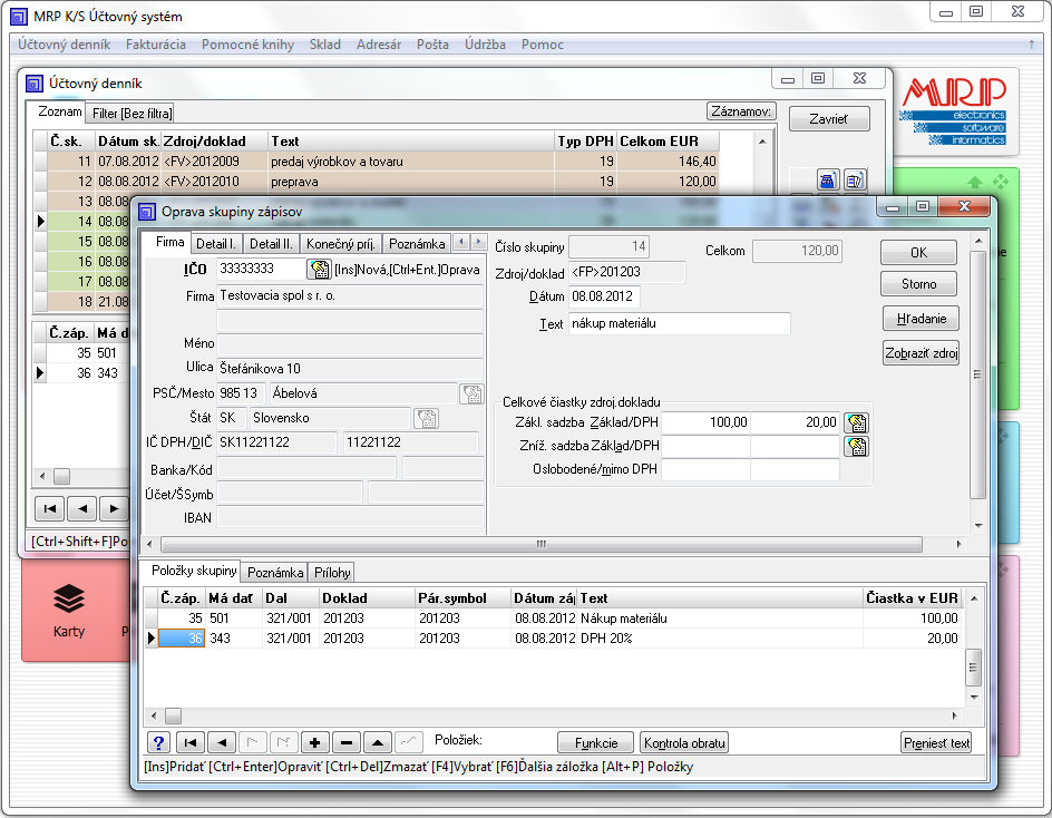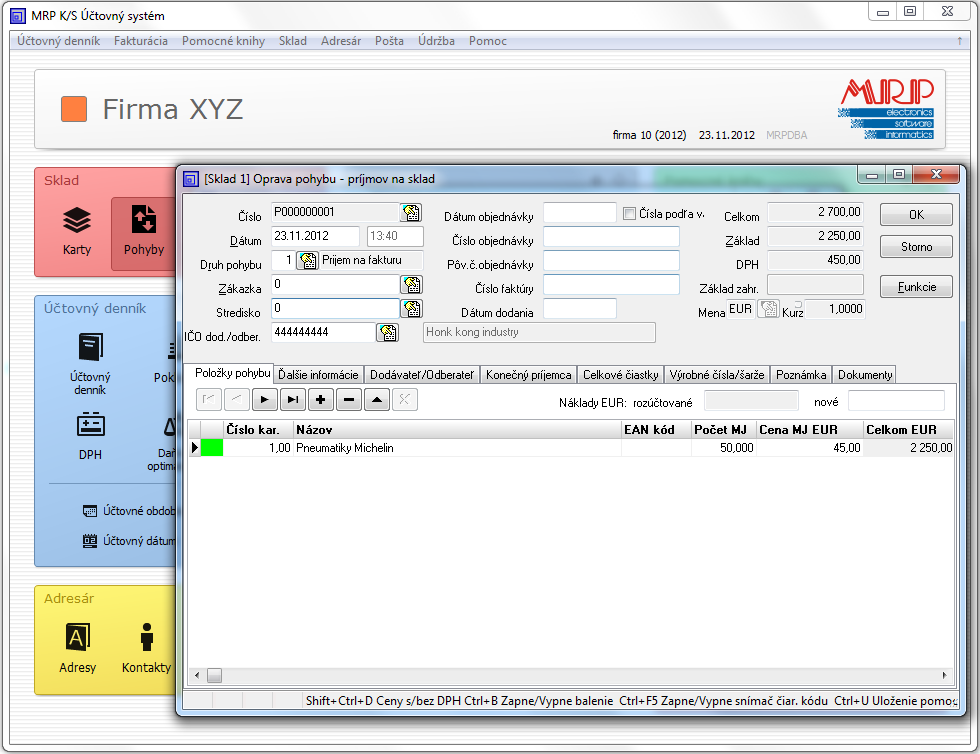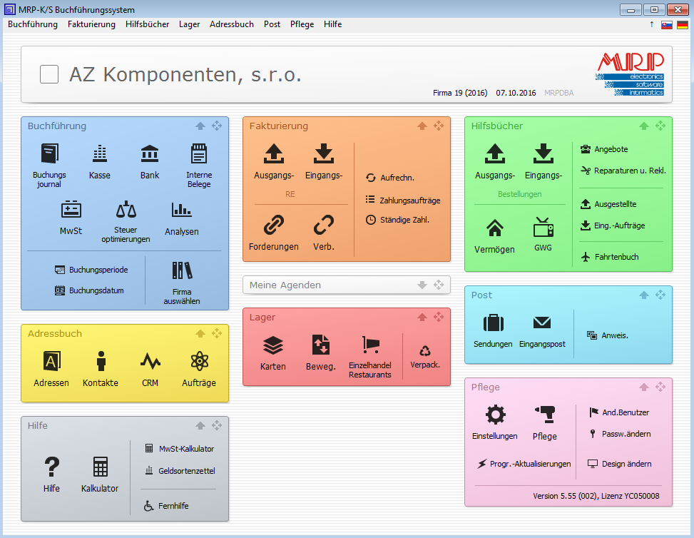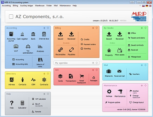 - Podporu pre MRP Vizuálny účtovný systém