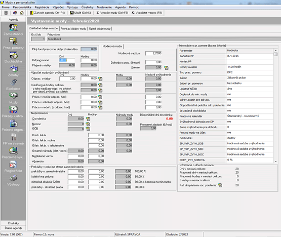 V pracovnom pomere definujete mzdové údaje zamestnanca, poistné, príplatky, zrážky, číslo osobného účtu, atď.