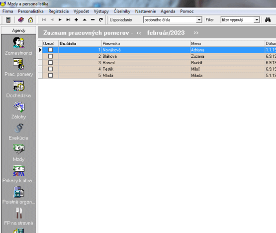 Evidencia neobmedzeného počtu zamestnancov - Personalistika | |||